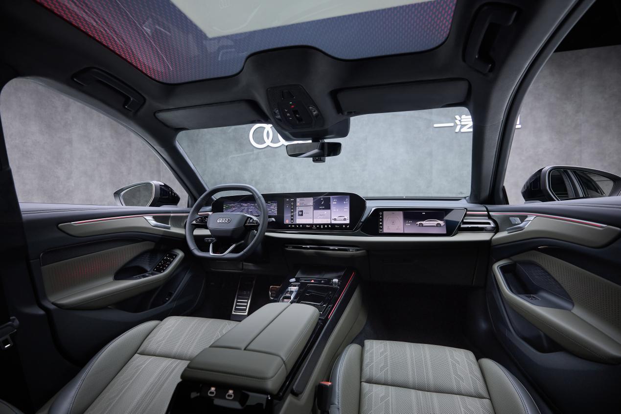 进入车内,奥迪打造出以人为中心的科技豪华空间,14.5英寸MMI全景显示屏、11.9英寸虚拟座舱、13.1英寸W-HUD、10.9英寸前排副驾屏幕和手机投屏,组成5屏联动数字舞台,将科技与人性化融于一体;全场景语音助手,可实现0.2秒极速响应,支持连续多轮对话和方言识别;9分区智能全景天幕拥有1.96平方米超大覆盖面积,毫秒级响应,配合两侧112颗RGB LED组成的银河星空顶,打造出极致的浪漫座舱空间。