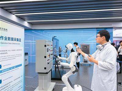南方电网广东电网电力机器人实验室内,工作人员正在对机器人进行训练。